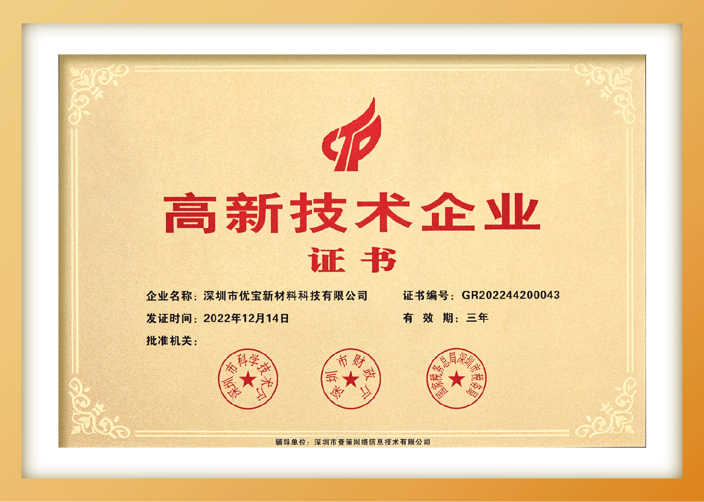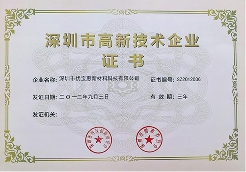 優寶新材是深圳市新材料行業協會常務理事單位、中國中小企業創新100強、深圳自主創新百強中小企業等一系列珍貴榮譽。優寶新材以優質的產品,服務全球客戶1000余家,其中500強企業30余家。